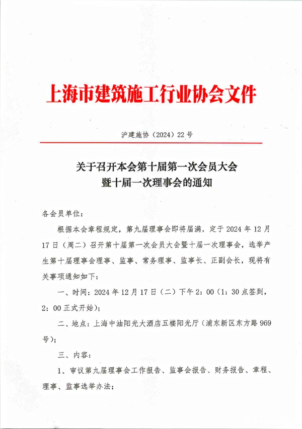 关于召开本会第十届第一次会员大会暨十届一次理事会的通知