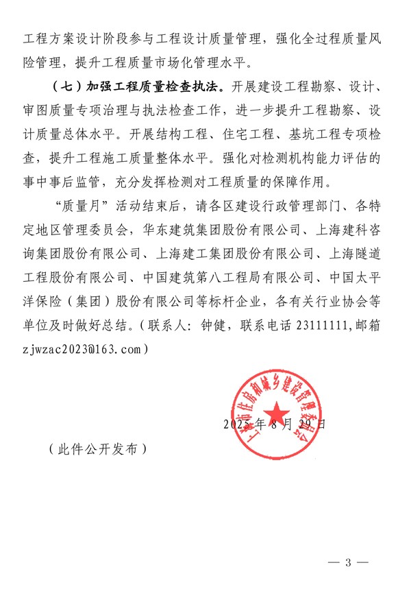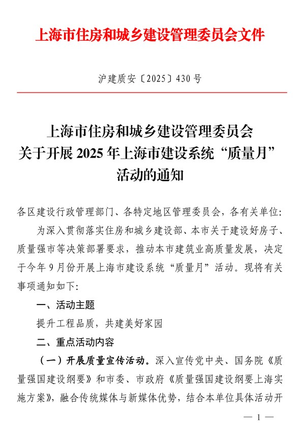 转发:关于开展2025年上海市建设系统“质量月”活动的通知
